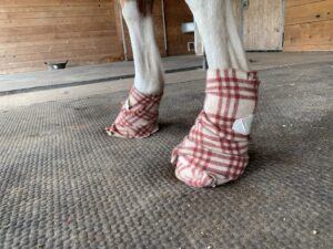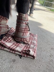 Diese besondere Wickeltechnik aus reinem Leinen und reiner Wolle durfte ich vor einigen Jahrzehnten von Frau Magister Haerpfer aus Österreich lernen. Sie war nicht nur eine beeindruckende Frau, sondern stellte auch äußerst hochwertige, naturreine Öle für Pferdehufe her.