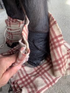 Ein großer Vorteil: Die benötigten Materialien haben viele Pferdehalter ohnehin zu Hause. Und wie wir alle wissen – wenn bei unseren Pferden etwas passiert, ist es gerne mal Sonntag. Da hat man kein Crash-Eis für die akute Rehe oder die Schwellung der Sehnen zur Hand, aber mit dieser Wickeltechnik kann man sofort reagieren – noch bevor weitere Maßnahmen oder der Tierarzt zum Einsatz kommen.