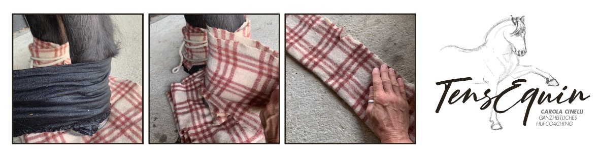 Das Besondere an dieser Methode ist, dass sie nicht nur Wärme sanft ableitet, was dem Pferd sofort Erleichterung verschafft, sondern gleichzeitig Entzündungsgeschehen ausleitet. Und sie bietet darüber hinaus eine wunderbare Möglichkeit, den Heilungsverlauf sichtbar zu machen: Die Wärmeabgabe über die Haut in die Wolle verändert sich im Laufe der Anwendung. Man kann also genau beobachten, ob eine Verbesserung eintritt.